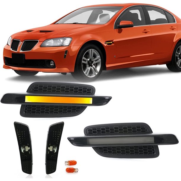 Usr 08 09 G8 Side Marker Lights Combo Smoke Front Bumper Sidemarkers Fender Built In Led Lamps Set Compatible With 2008 2009 Pontiac G8 Gt Gxp 4 Pieces Smoked Lens With Amber Bulbs Walmart Com